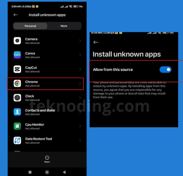 Enabling “Unknown Sources” has security risks, as you may download unverified apps. Make sure to only download from trusted sources.